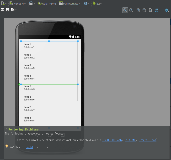 - android.support.v7.internal.widget.ActionBarOverlayLayout (Fix Build Path, Edit XML, Create Class)
